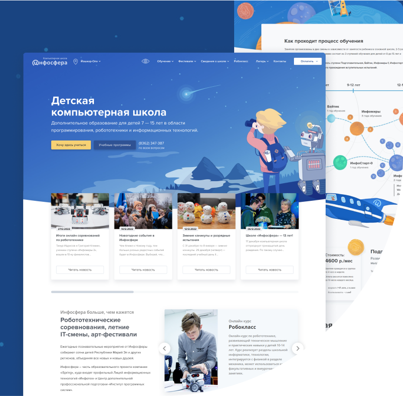 Infosphera 어린이 교육 프랜차이즈를 위한 아이덴티티, 상호작용 및 웹사이트 디자인