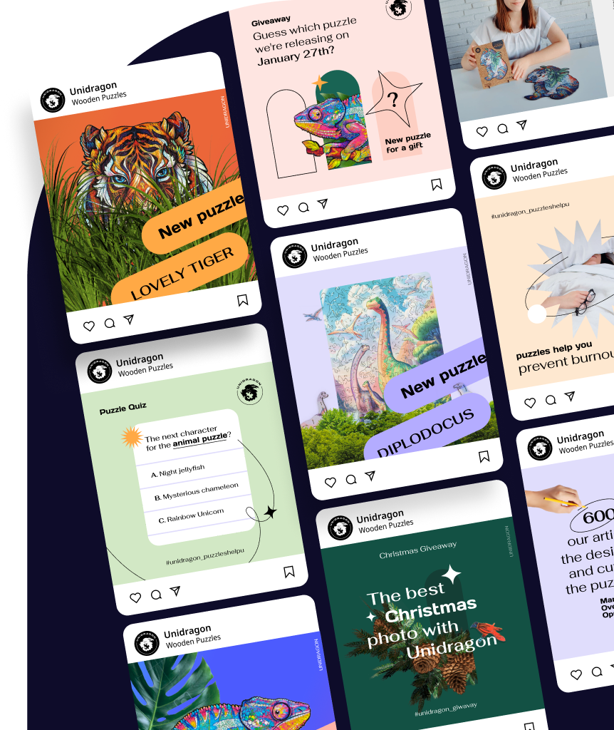 Unidragon의 비주얼아이덴티티 재구성 작업 및 브랜드 인스타그램 계정 재디자인 작업을 담당했습니다. 이 퍼즐은 스트레스 해소, 뇌 단련, 명상을 할 수 있는 새롭고 재미있는 방법 중 하나입니다. 저는 브랜드 전략부터 커뮤니케이션, 브랜드 아이덴티티까지 진행해본 경험이 있습니다.