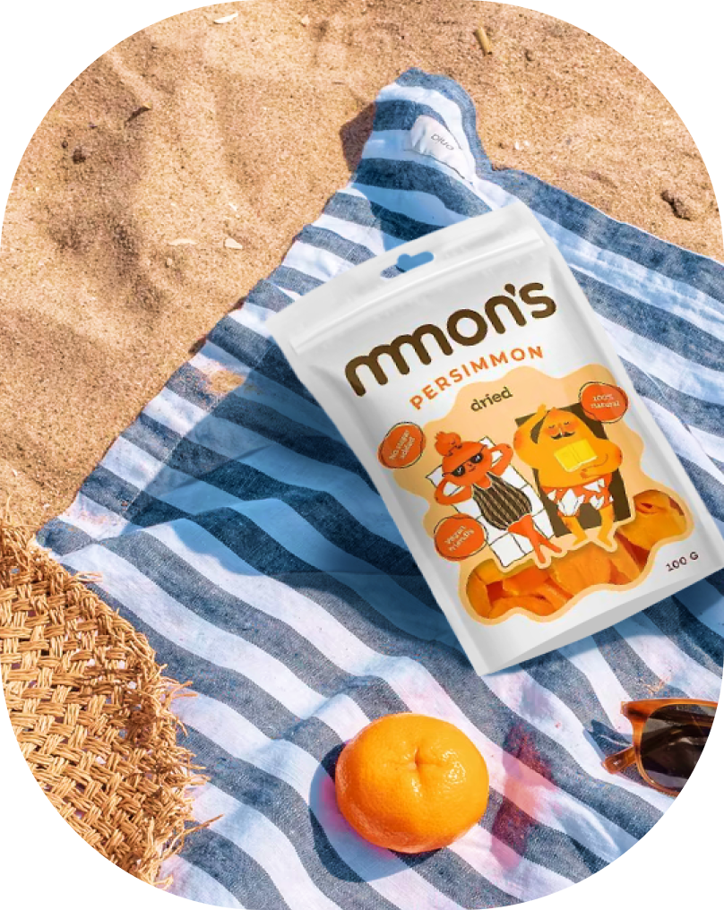 프로젝트 목적은 부모님들을 만족시키고, 아이들의 관심을 끌 수 있는 포장을 디자인하는 것이었습니다. 부모님들은 늘 아이들에게 건강에 좋은 간식을 주고 싶은 반면, 아이들은 예뻐 보이고 맛있는 것을 좋아합니다. 저는 패키지에 감 캐릭터로 가족 이야기를 그려봤습니다. 엄마와 아빠(곶감)는 바닷가에서 일광욕을 하고, 할머니는 손주들(초콜릿 감)과 초콜릿 바다에서 수영을 하고, 온 가족(감 소스)이 함께 저녁을 먹는 모습들입니다. 사랑스러운 분위기, 밝은 색상을 담았으며, 명확한 영양 정보도 포장에 넣어봤습니다.
